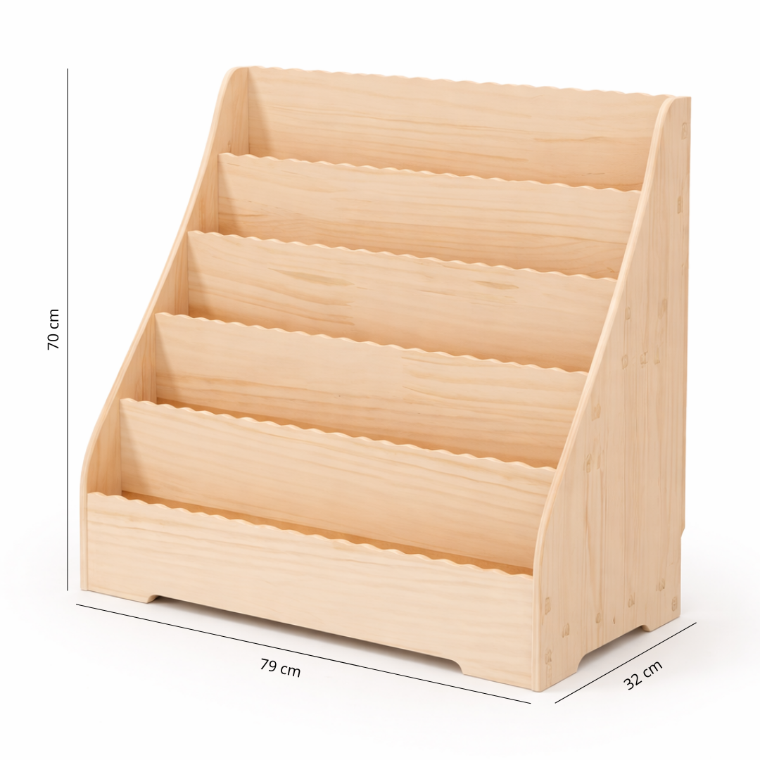 Bibliothèque Enfant Andorre Montessori en Bois Brut - Vagues