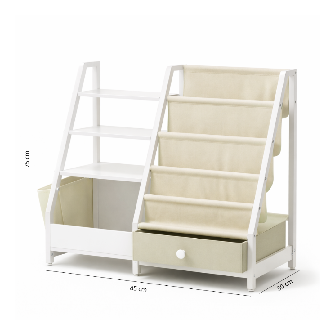 Bibliothèque Enfant Kyoto Multi-Rangement - Étagères et Poches en Tissu Beige