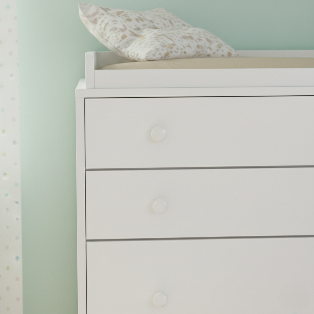 Cette commode avec plan à langer offre un espace dédié au rangement et aux soins quotidiens de l’enfant. Les tiroirs et compartiments permettent d’organiser vêtements, produits et accessoires à portée de main. Le plan à langer intégré assure une surface stable adaptée aux changes du quotidien.
